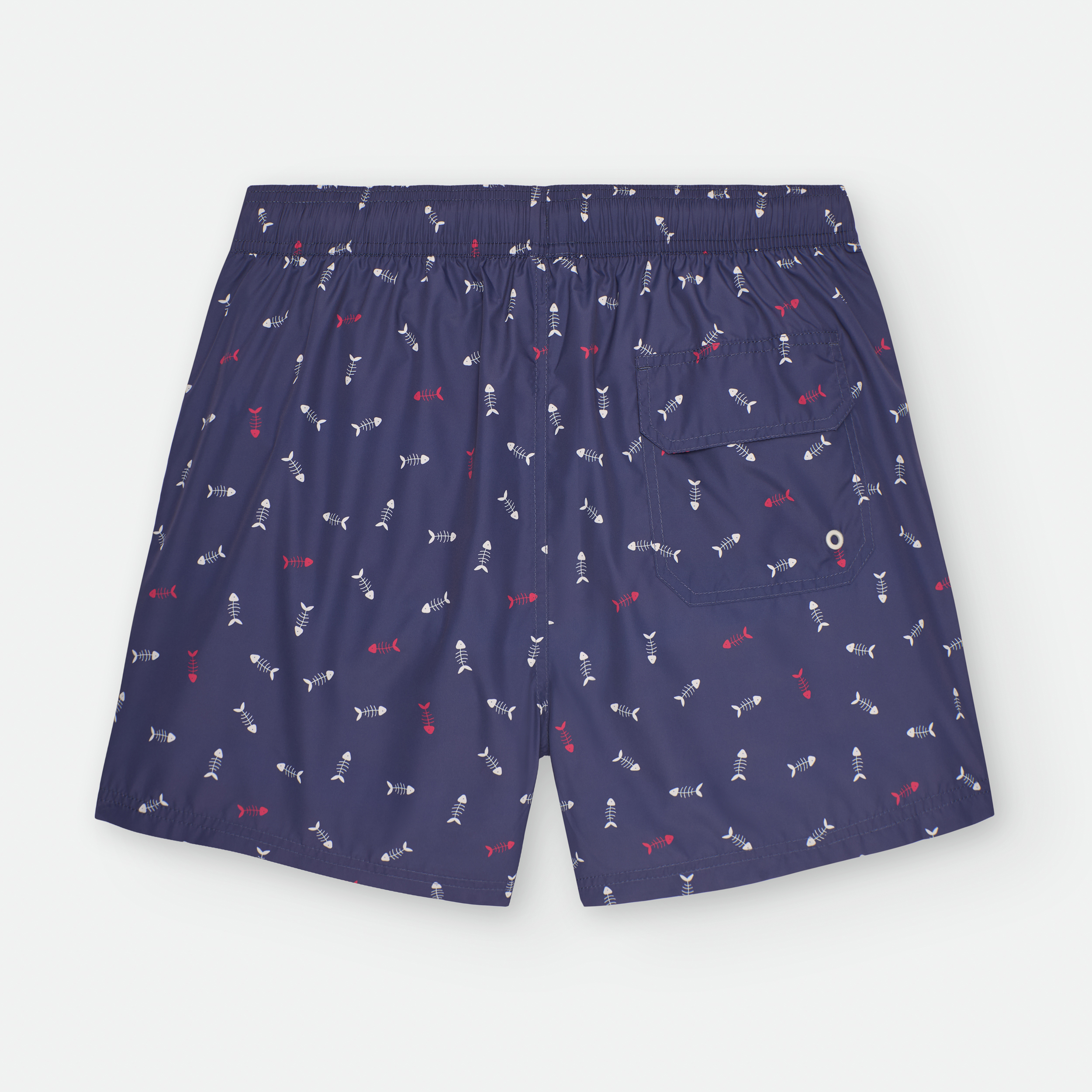 «BAÑADOR CON CINTURILLA ELÁSTICA, CORDONES AJUSTABLES, BOLSILLOS LATERALES EN DELANTERO Y BOLSILLO TRASERO CON CIERRE DE VELCRO.