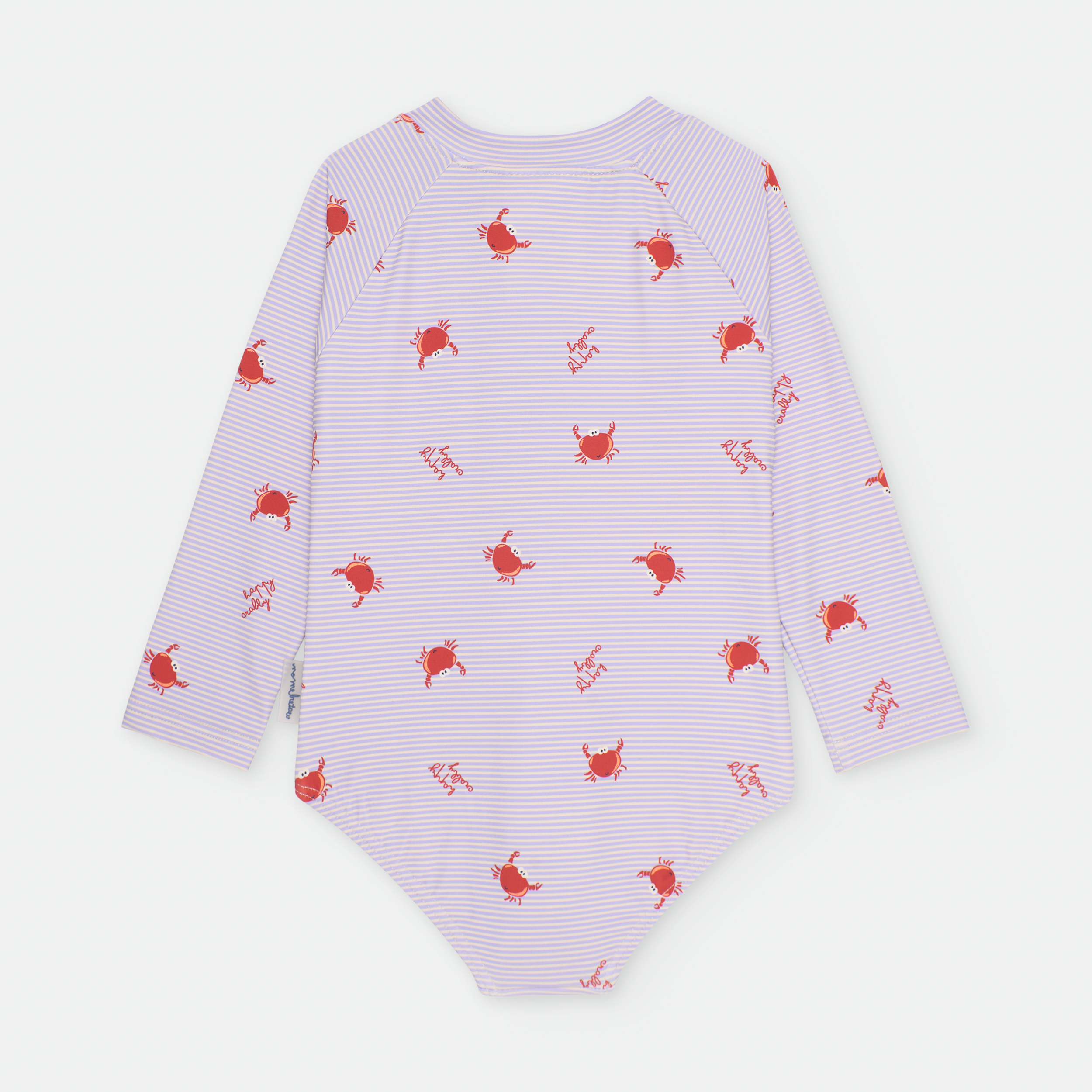 ESTAMPADO DE RAYAS Y CANGREJOS SOBRE FONDO COLOR CRUDO.»