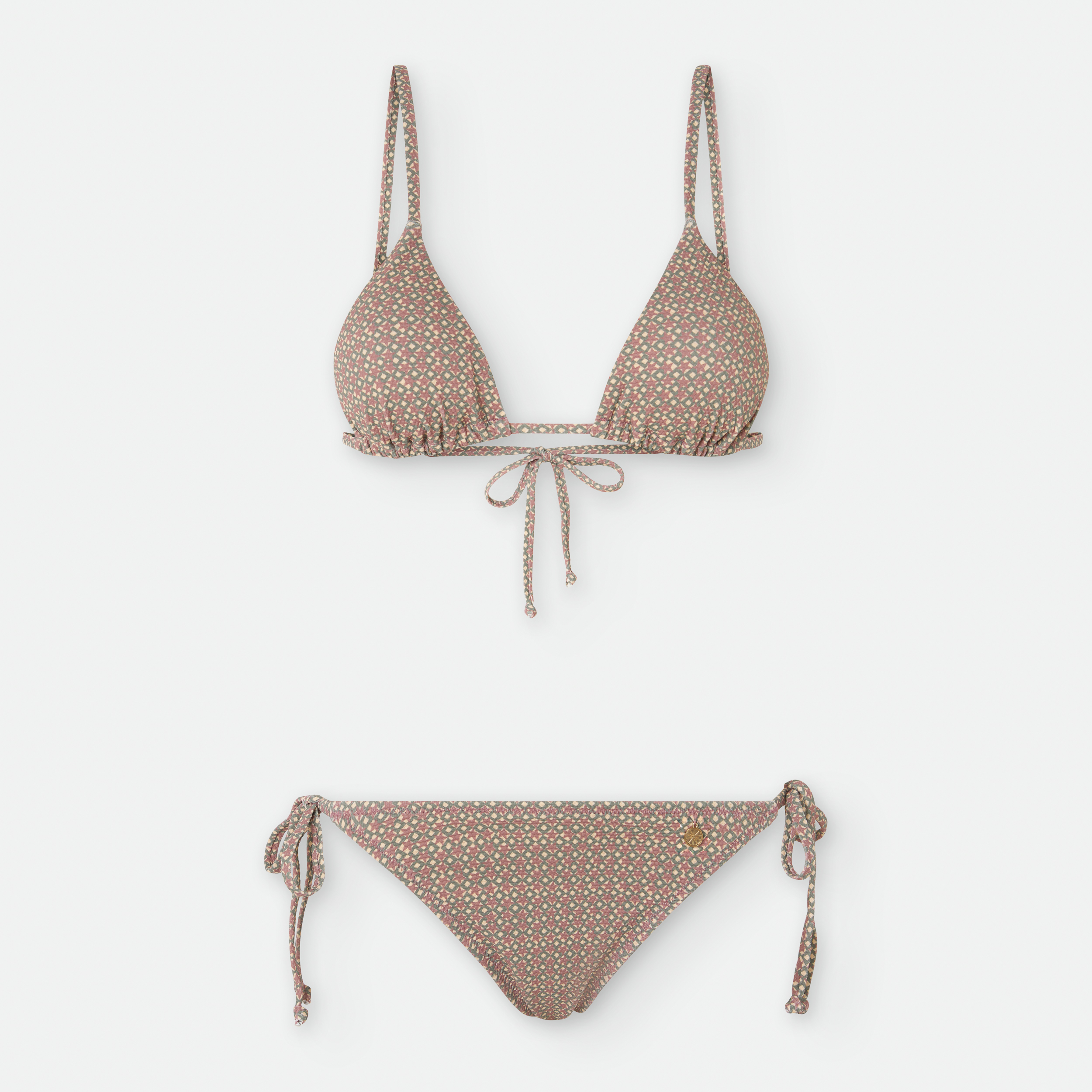 «BIKINI DOS PIEZAS. SUJETADOR DE TRIÁNGULO CON COPA EXTRAÍBLE, SIN AROS. TIRANTES FINOS Y TIRAS DE ANUDAR EN LA ESPALDA.