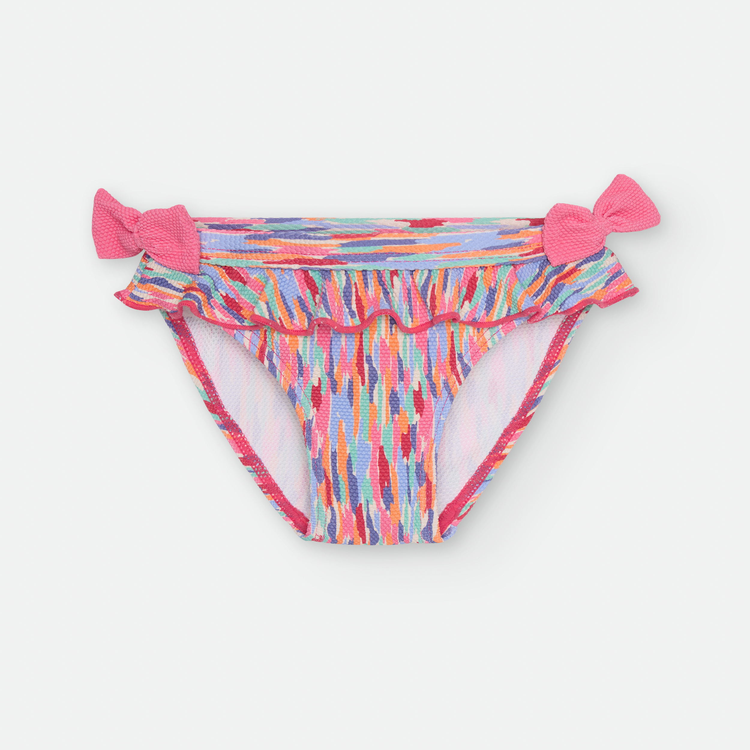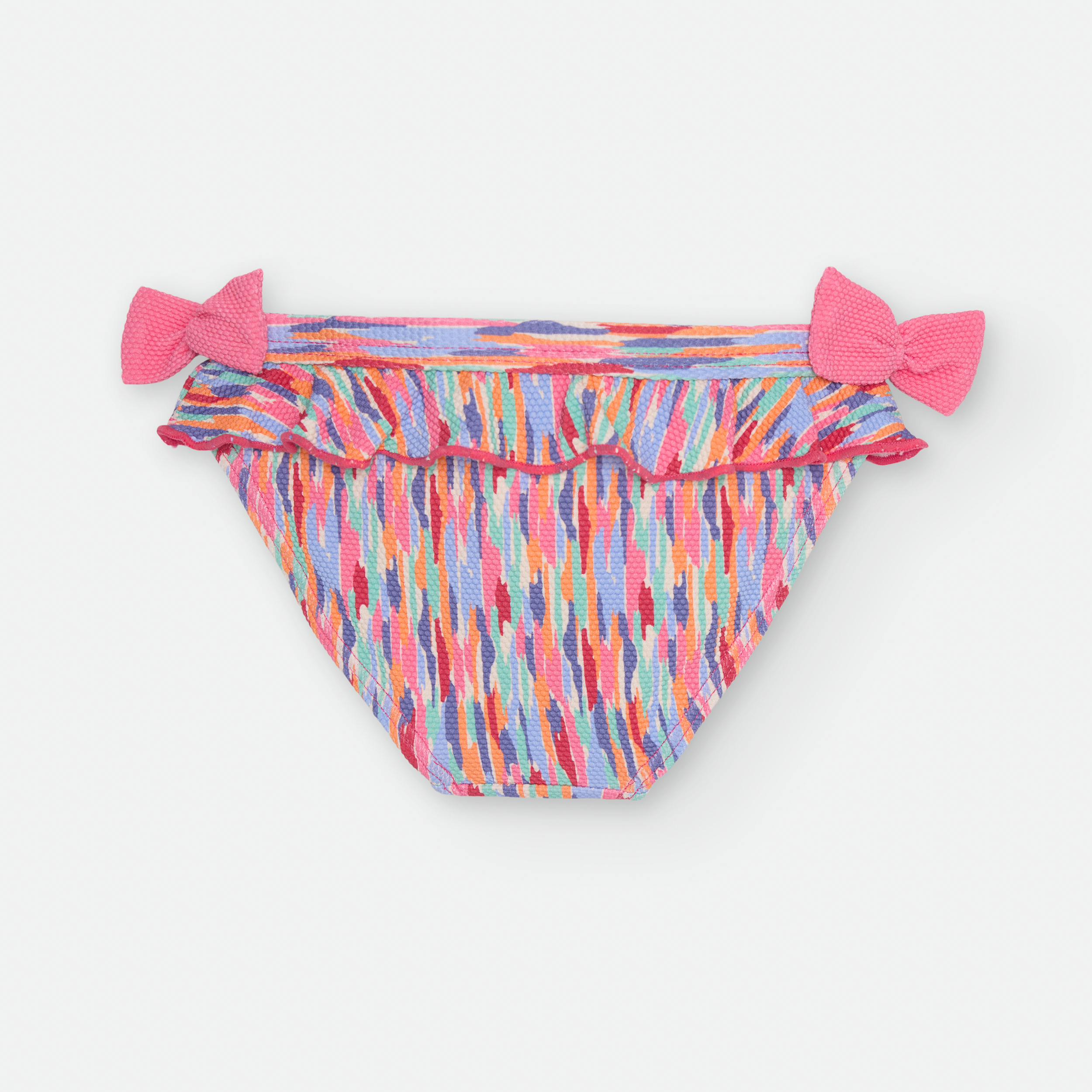 «BRAGUITA DE BAÑO CON CINTURILLA ELÁSTICA, VOLANTE Y LAZOS EN LOS LATERALES.