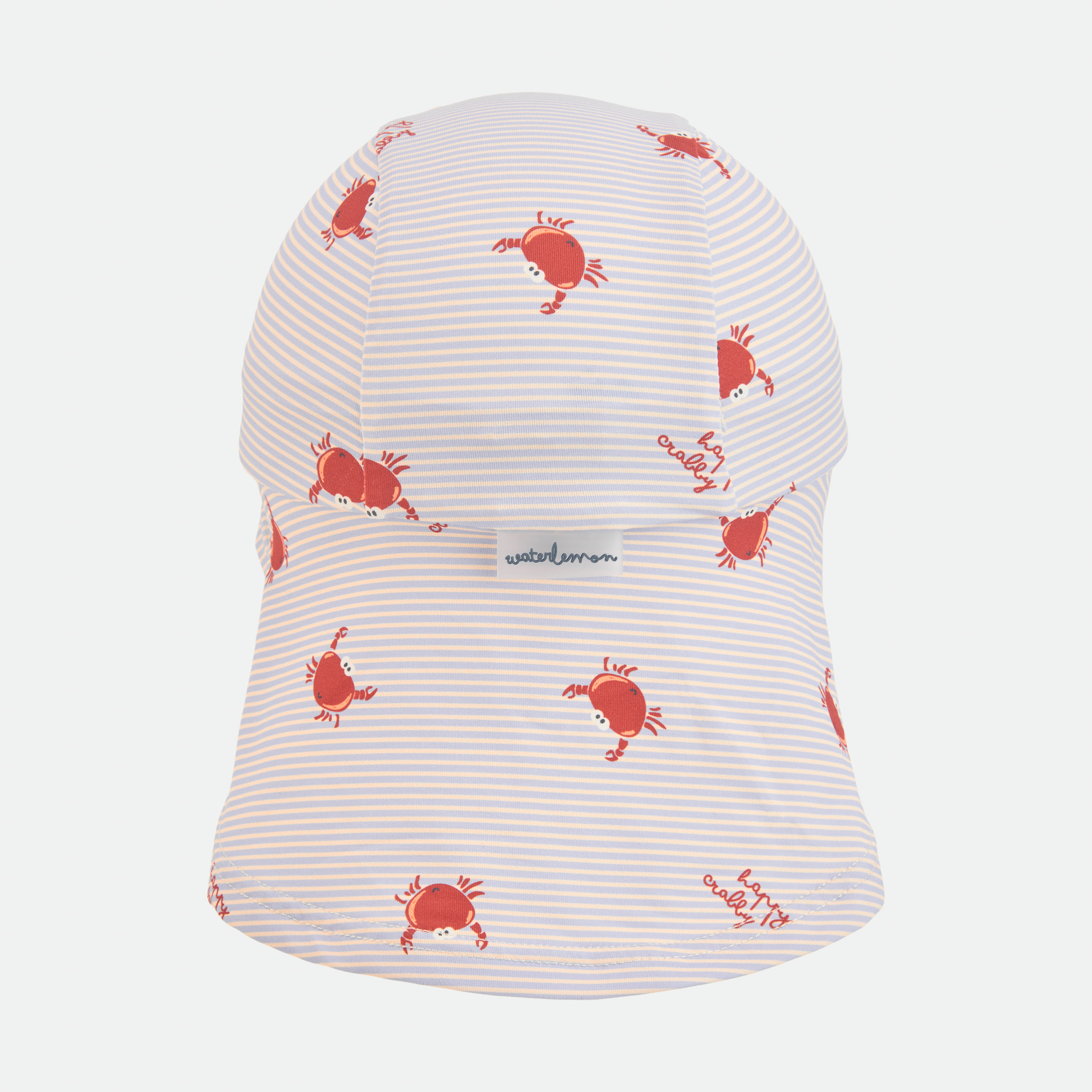 ESTAMPADO DE RAYAS Y CANGREJOS SOBRE FONDO COLOR CRUDO.»