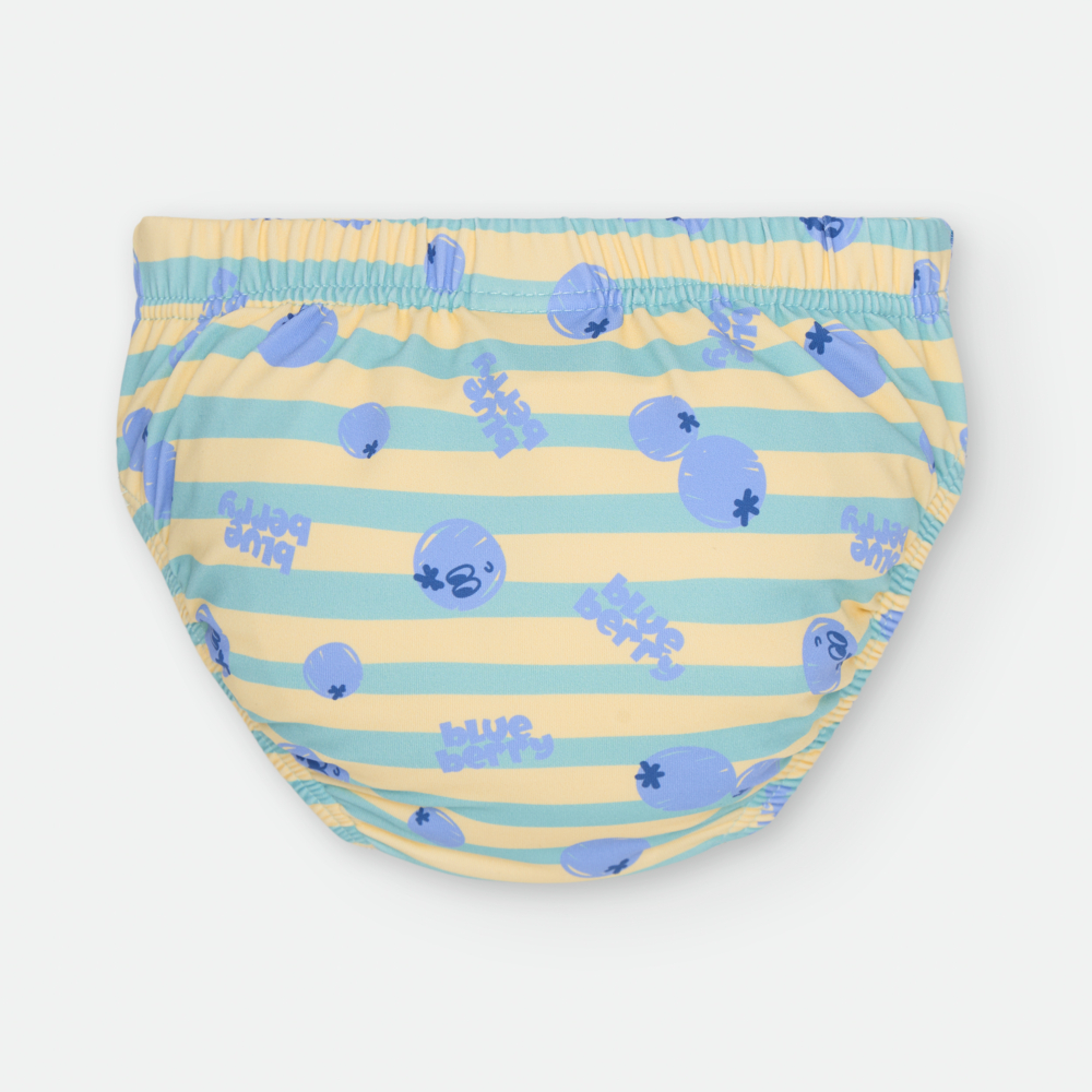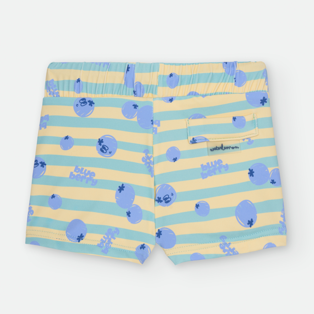 ESTAMPADO DE RAYAS VERDES Y ARÁNDANOS SOBRE FONDO COLOR AMARILLO.»