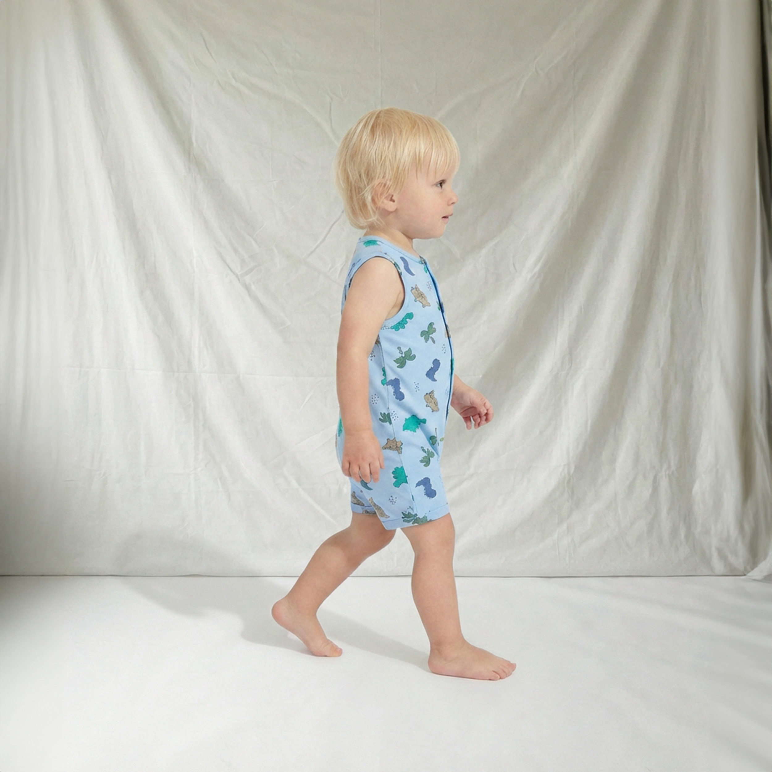«PELELE ESCOTE REDONDO SIN MANGAS, CIERRE A PRESIÓN TRASERO Y EN EL BAJO.