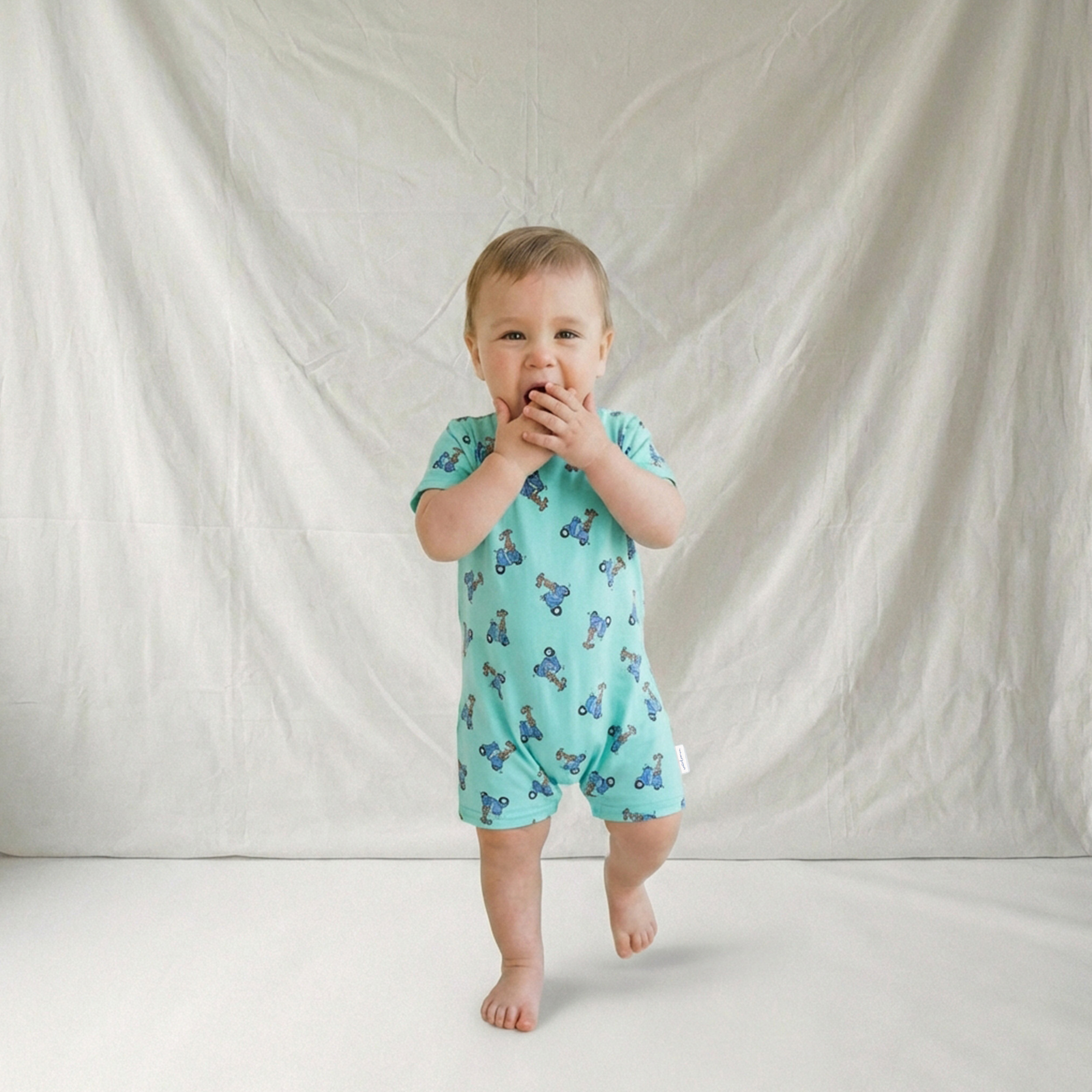 «PELELE ESCOTE REDONDO Y MANGA CORTA, CIERRE A PRESIÓN TRASERO Y EN EL BAJO.