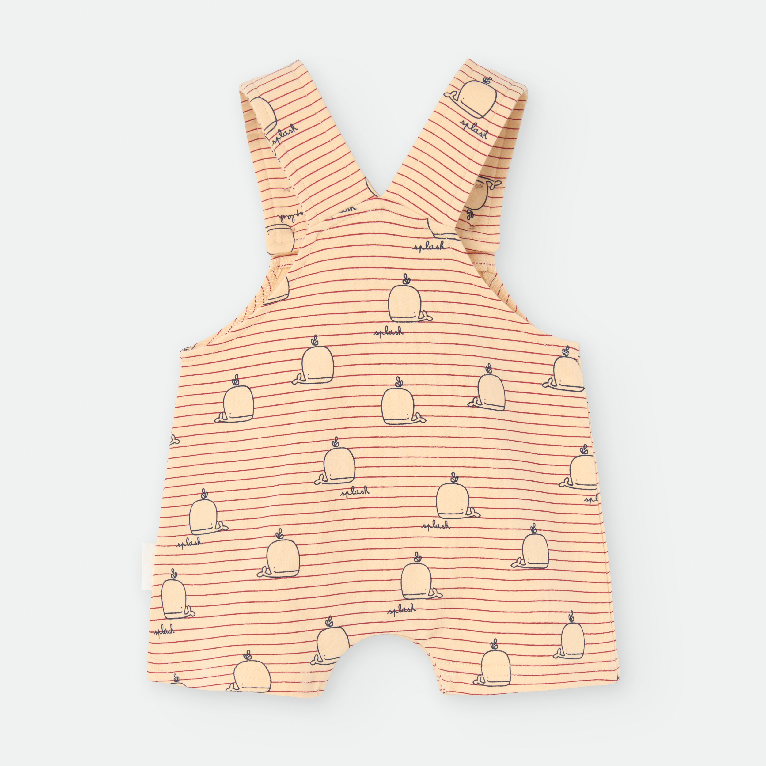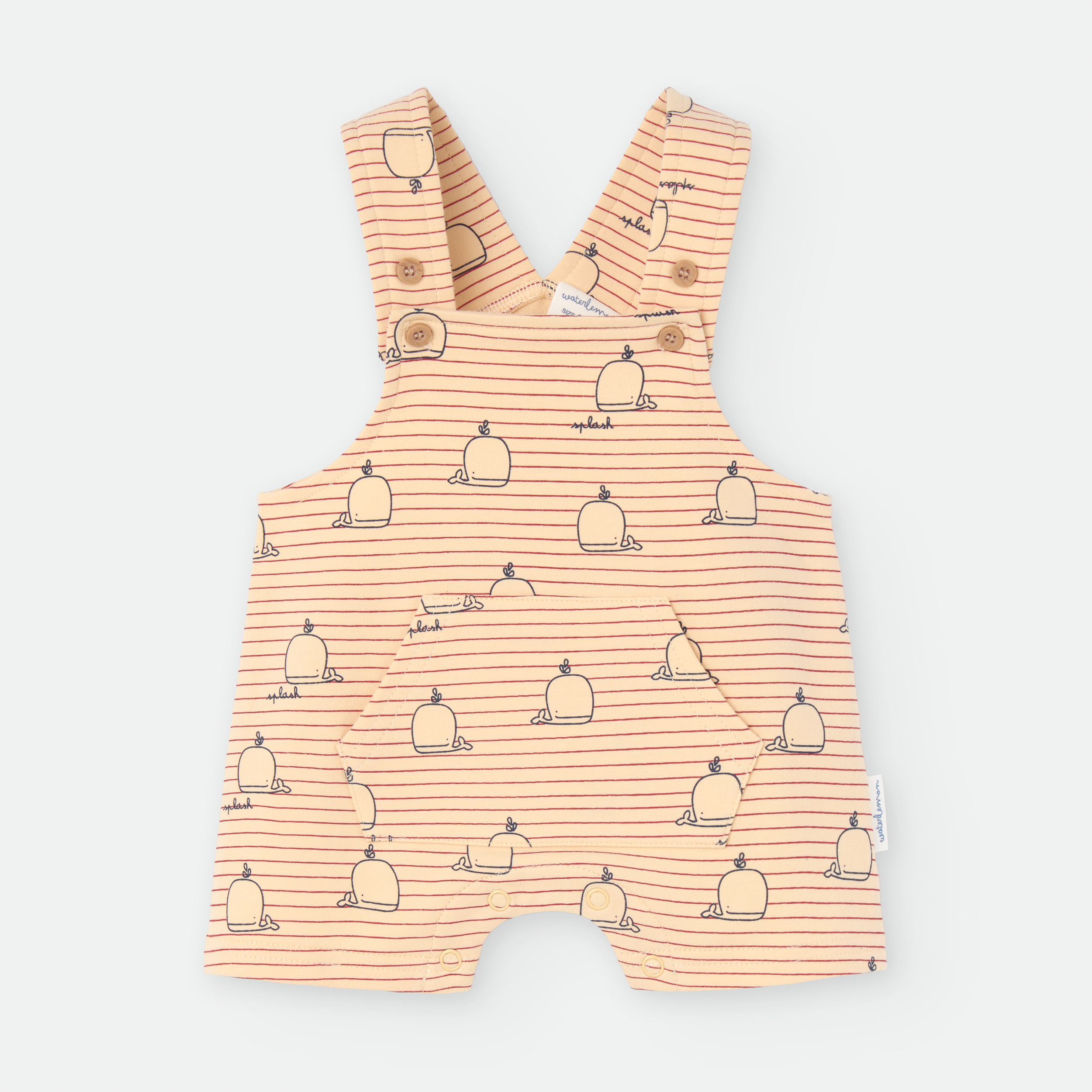ESTAMPADO DE RAYAS ROJAS CON BALLENAS. FONDO COLOR CRUDO.»