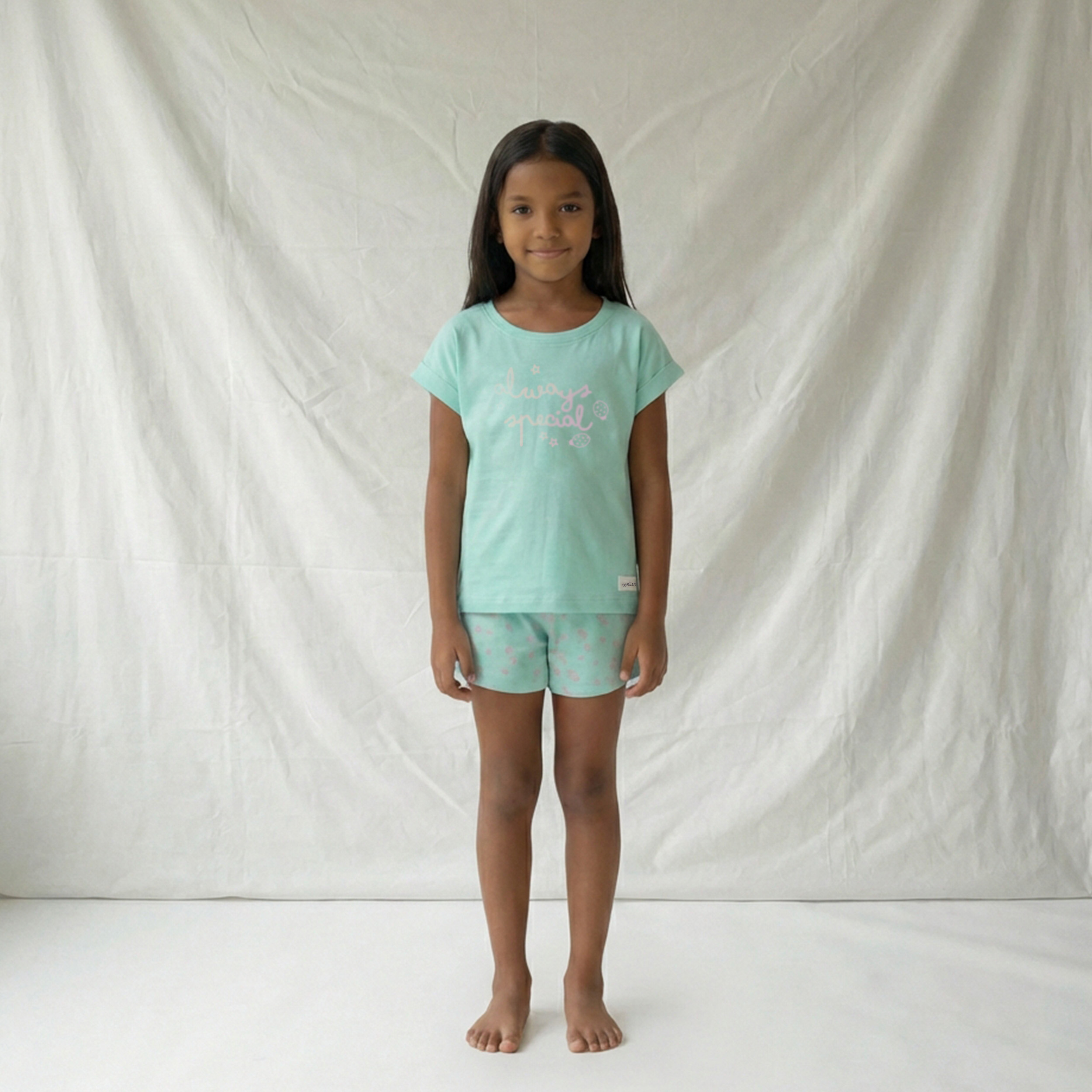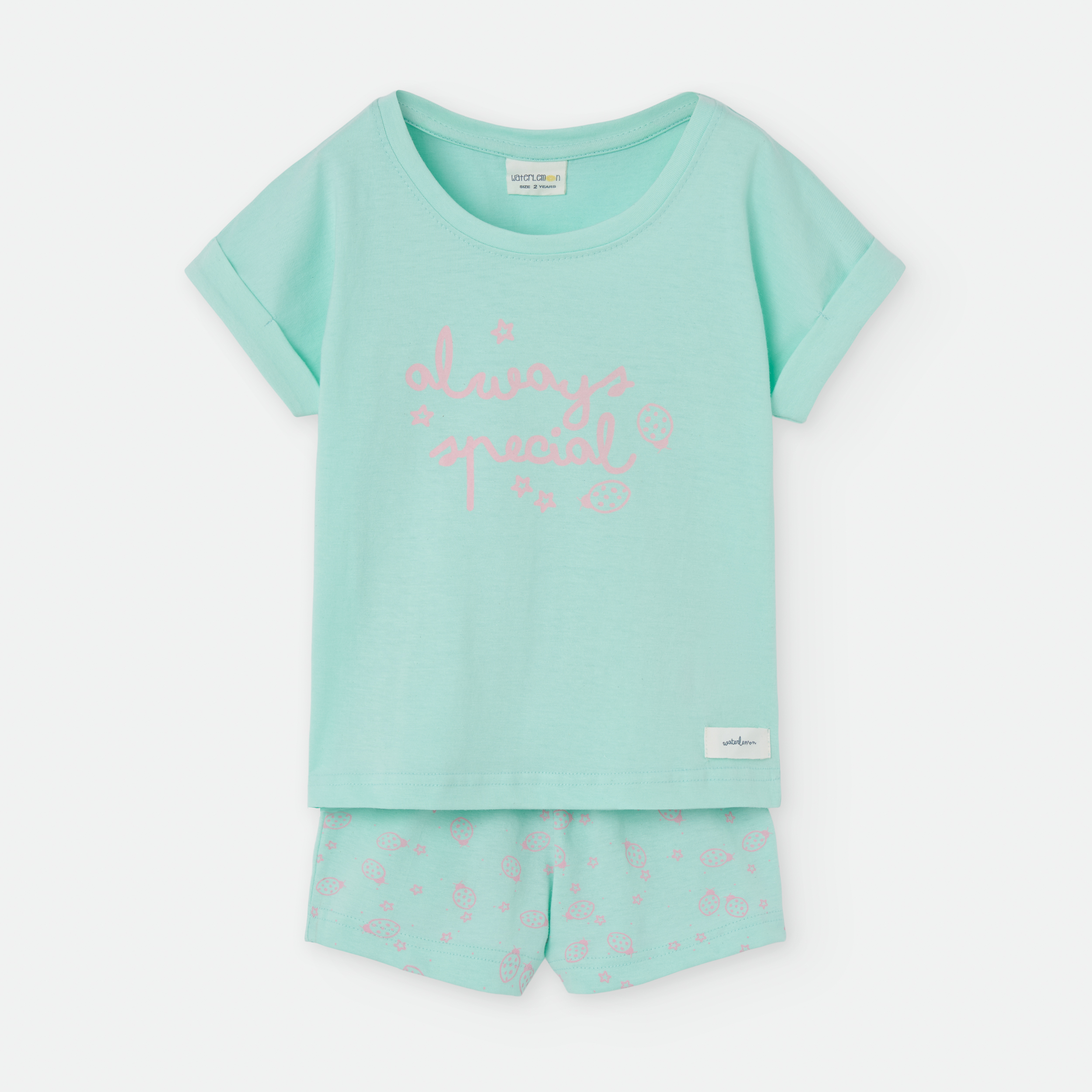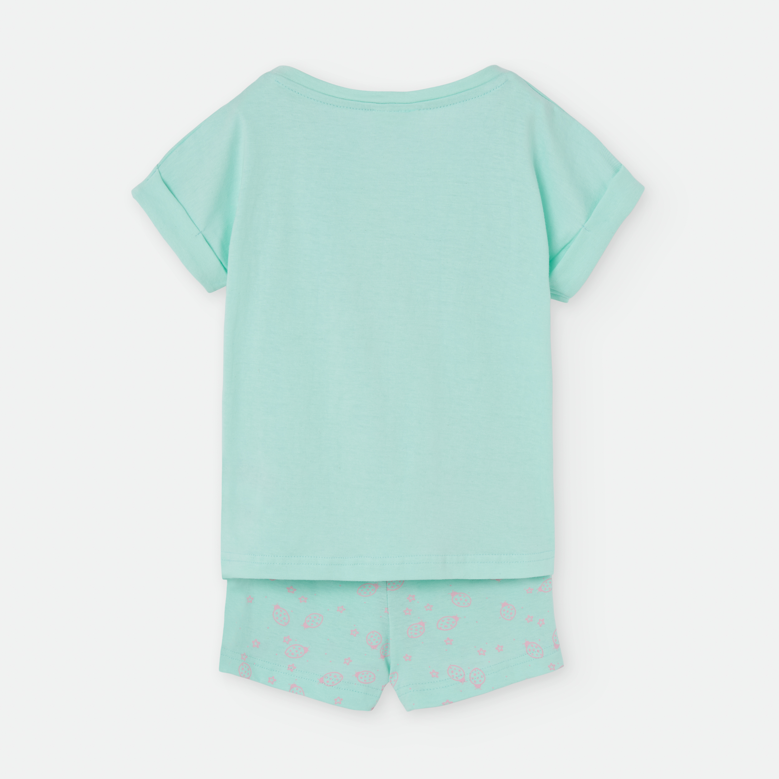 «PIJAMA DOS PIEZAS. CAMISETA ESCOTE REDONDO Y MANGA CORTA CON VUELTA.