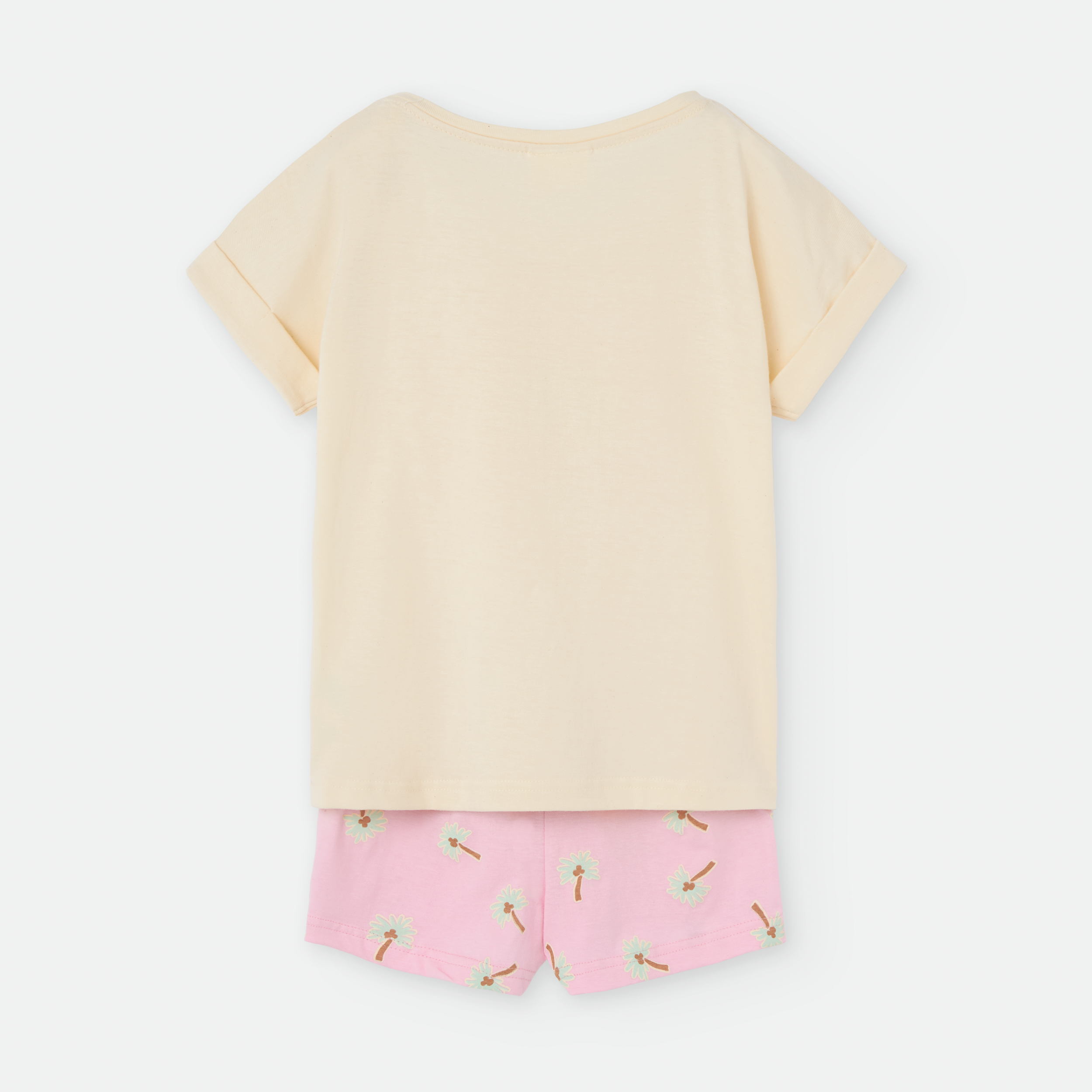«PIJAMA DOS PIEZAS. CAMISETA ESCOTE REDONDO Y MANGA CORTA CON VUELTA.