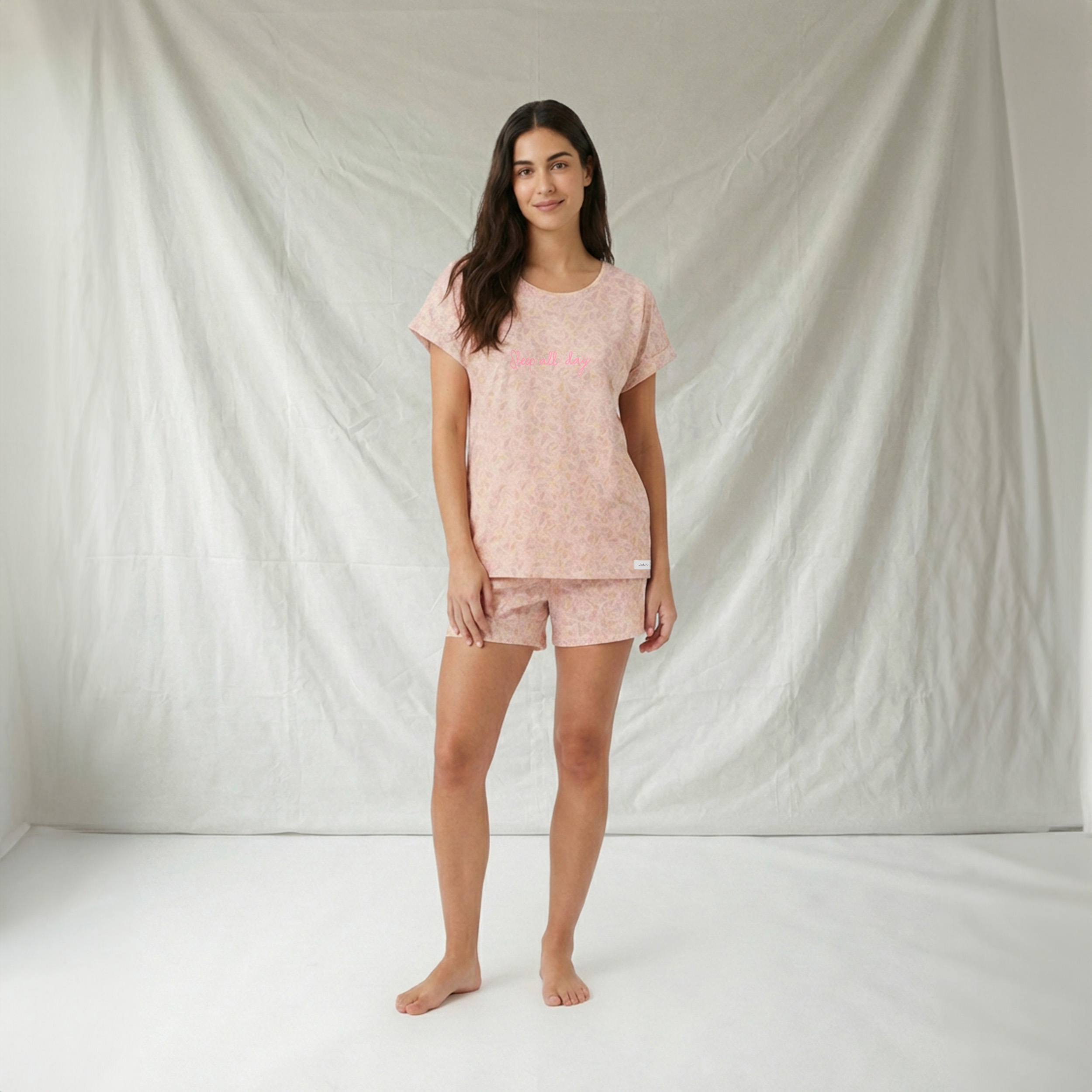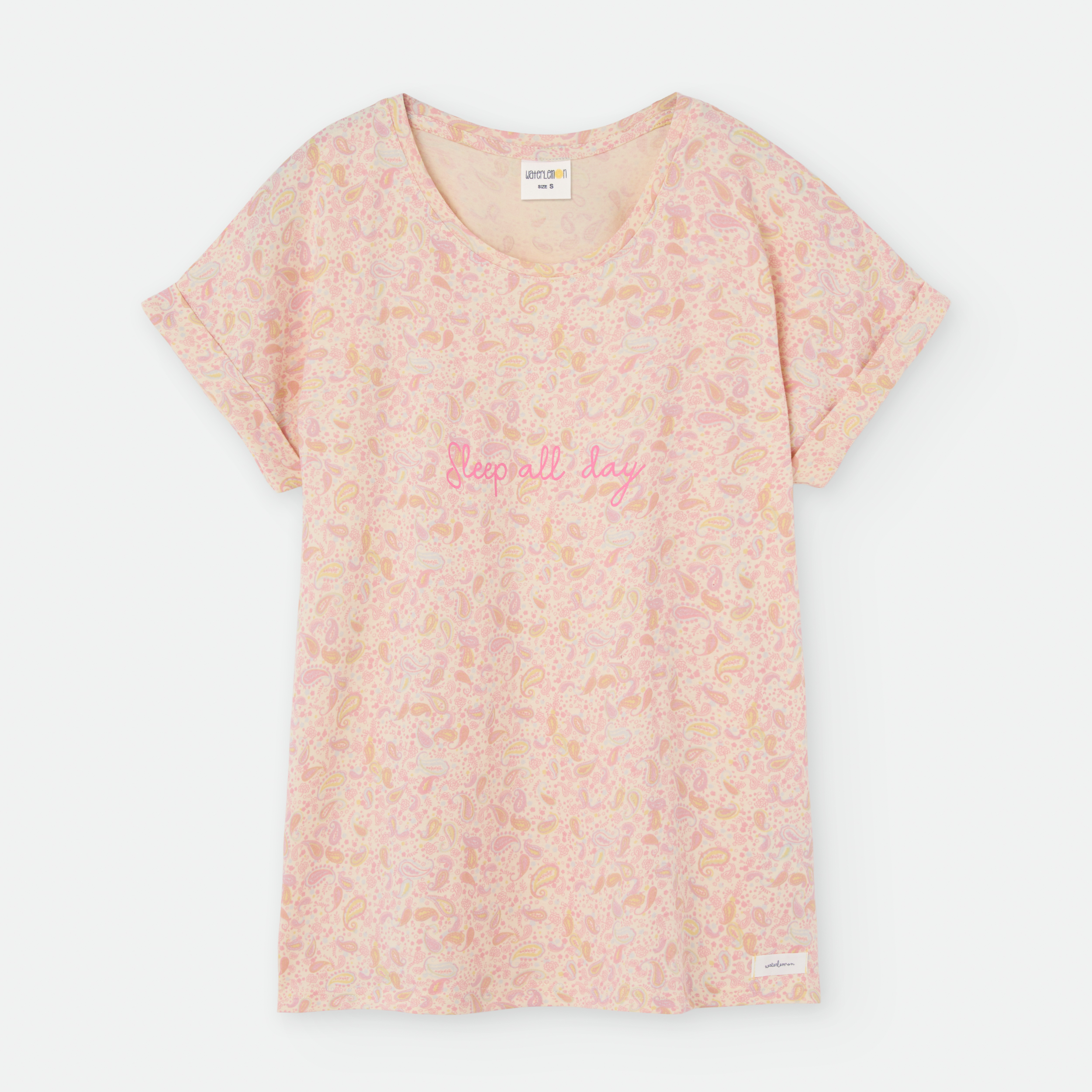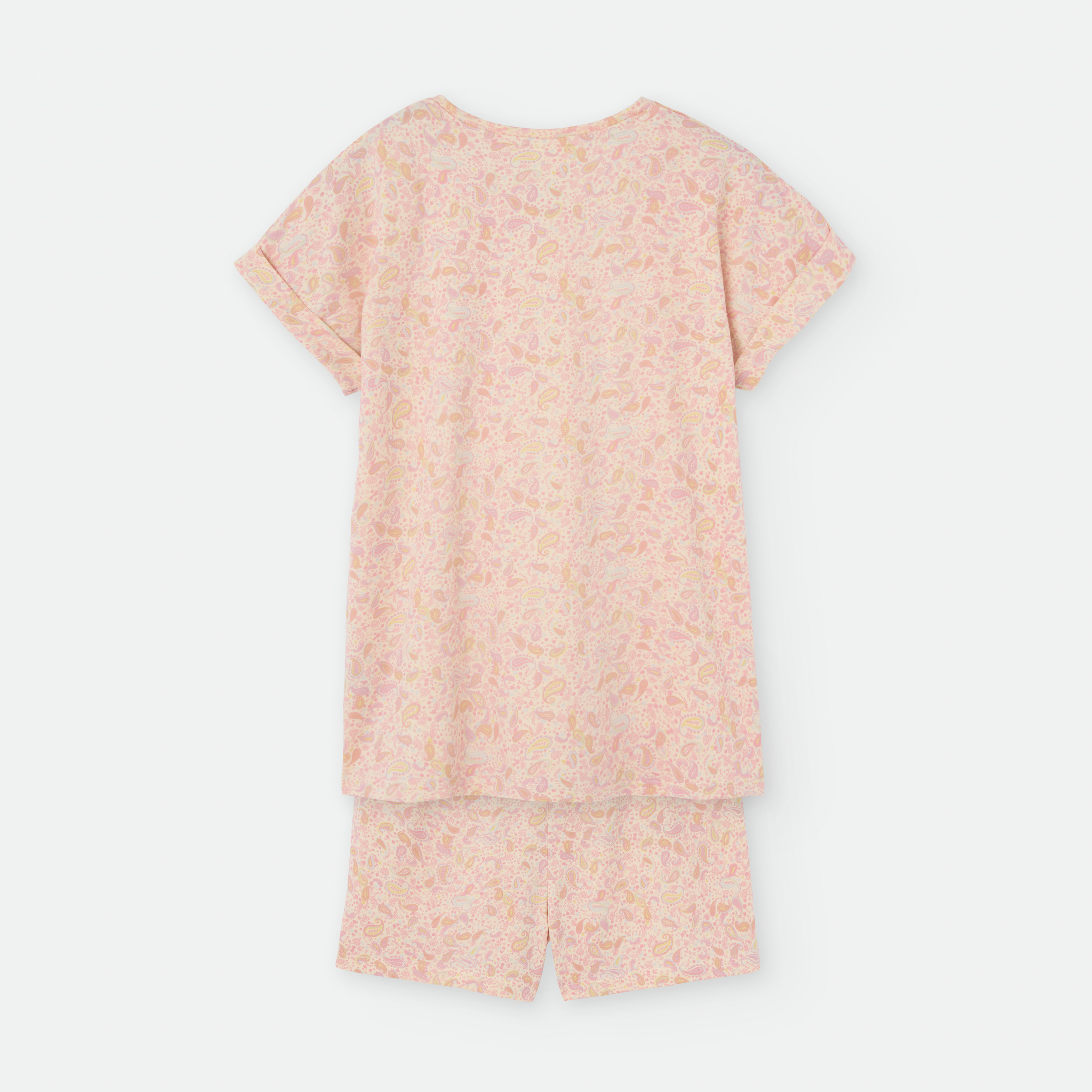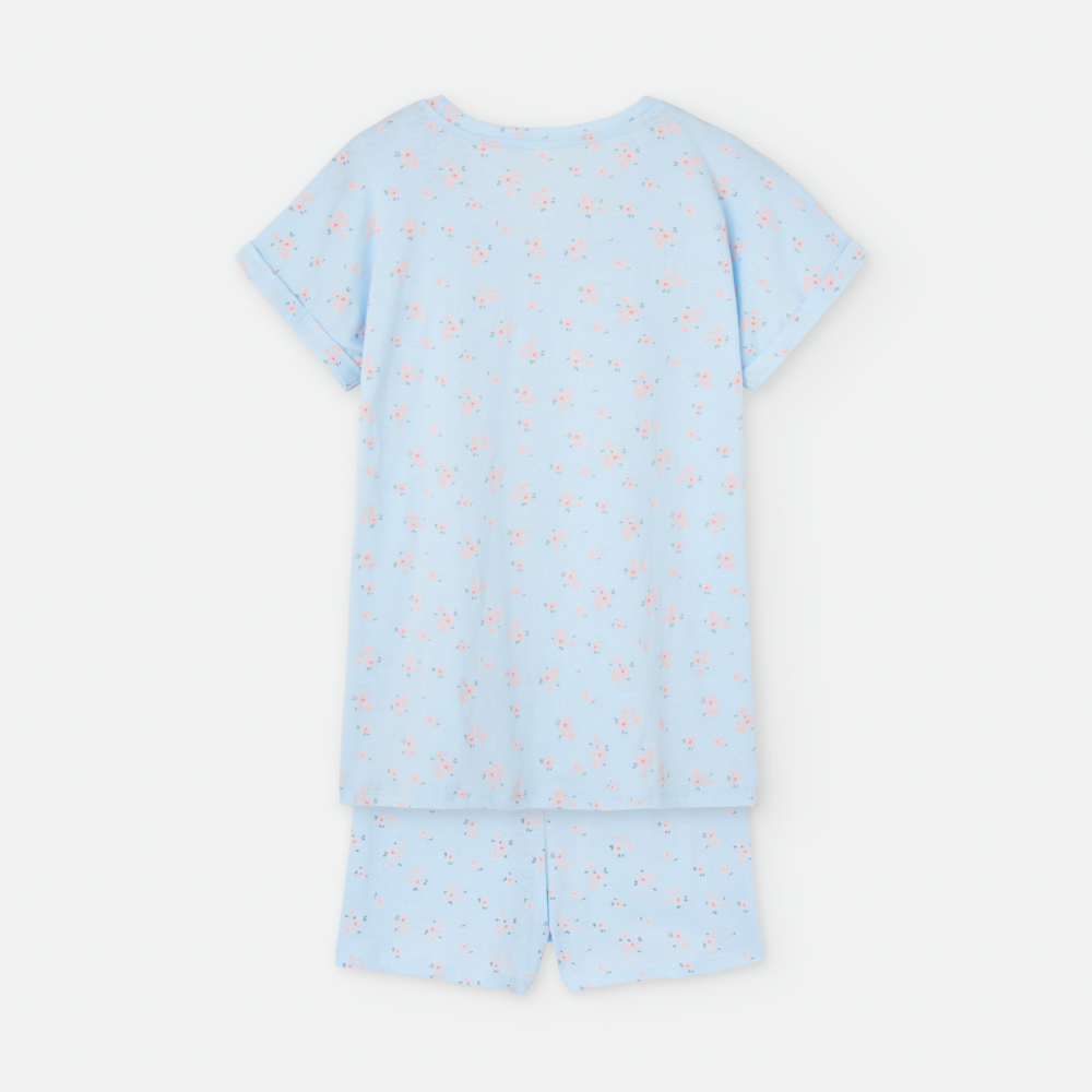 «PIJAMA DOS PIEZAS. CAMISETA ESCOTE REDONDO Y MANGA CORTA CON VUELTA.