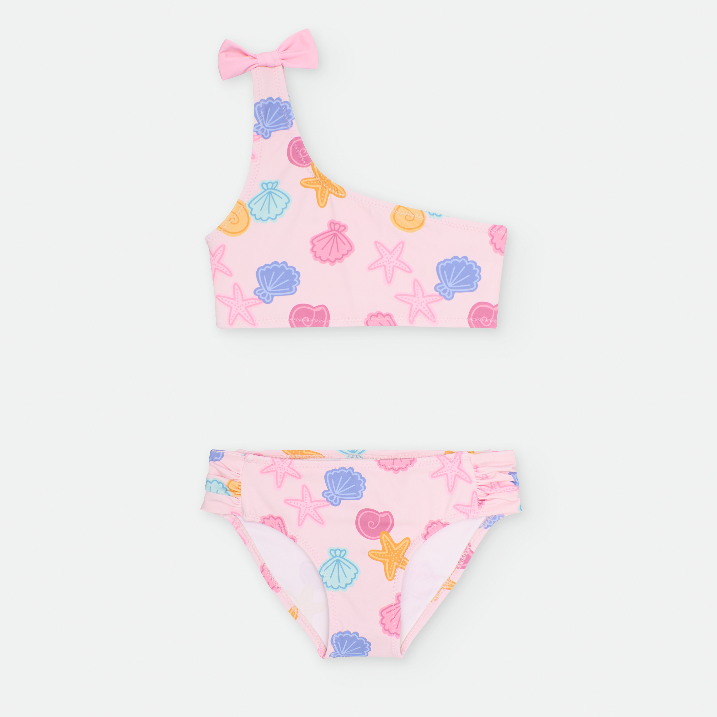 «BIKINI DOS PIEZAS. TOP ESCOTE ASIMÉTRICO CON COPA EXTRAÍBLE A PARTIR DE LA TALLA 10 AÑOS, SIN AROS. DETALLE LAZO EN EL TIRANTE.